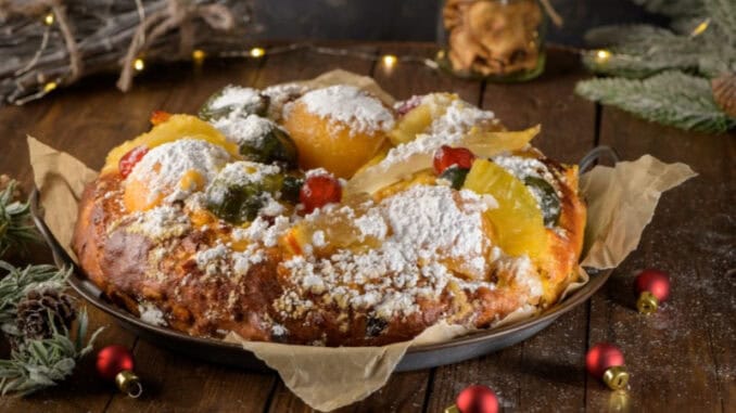 In Portugal gehört der Bolo-Rei zur Weihnachtszeit wie Lichterketten und Kerzenschein, ein Früchte-Kranzkuchen.