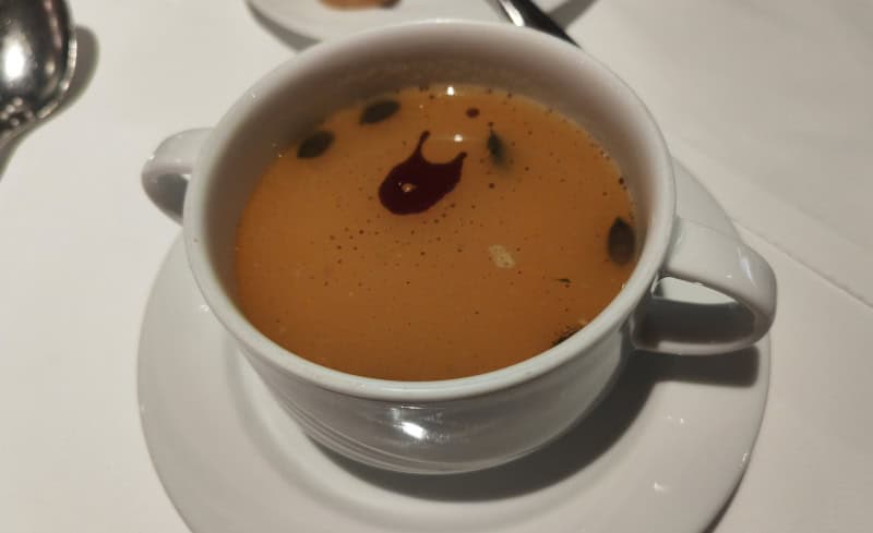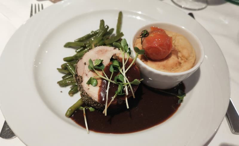 Nach dem Sektempfang nahmen wir im Restaurant Platz und das Serviceteam servierte uns das Gala-Dinner, was das Küchenteam mit viel Liebe zum Detail für uns zubereitet hatte. Die Tische waren besonders hübsch gedeckt.