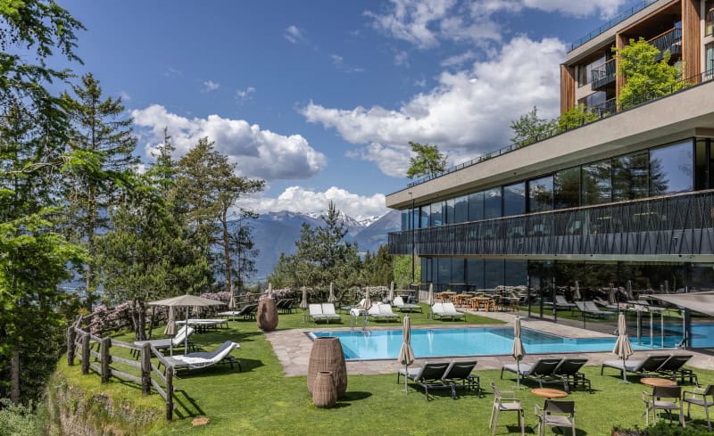Zwischen Baumwipfeln, Lärchen- und Fichten-Altholz, edlen, natürlichen Materialien und feinster Kulinarik finden anspruchsvolle Reisende und Freunde des gehobenen Komforts. Es bietet eine moderne Südtiroler Küche, die mit Panoramablick serviert wird und den Aufenthalt der Gäste krönt.