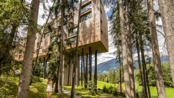 Mit dem Baumhotel auf Stelzen, umgeben von Wald und Natur, hat sie 2018 ein modernes alpines Refugium und einen Kraftort für Erholungssuchende und Genießer geschaffen.
